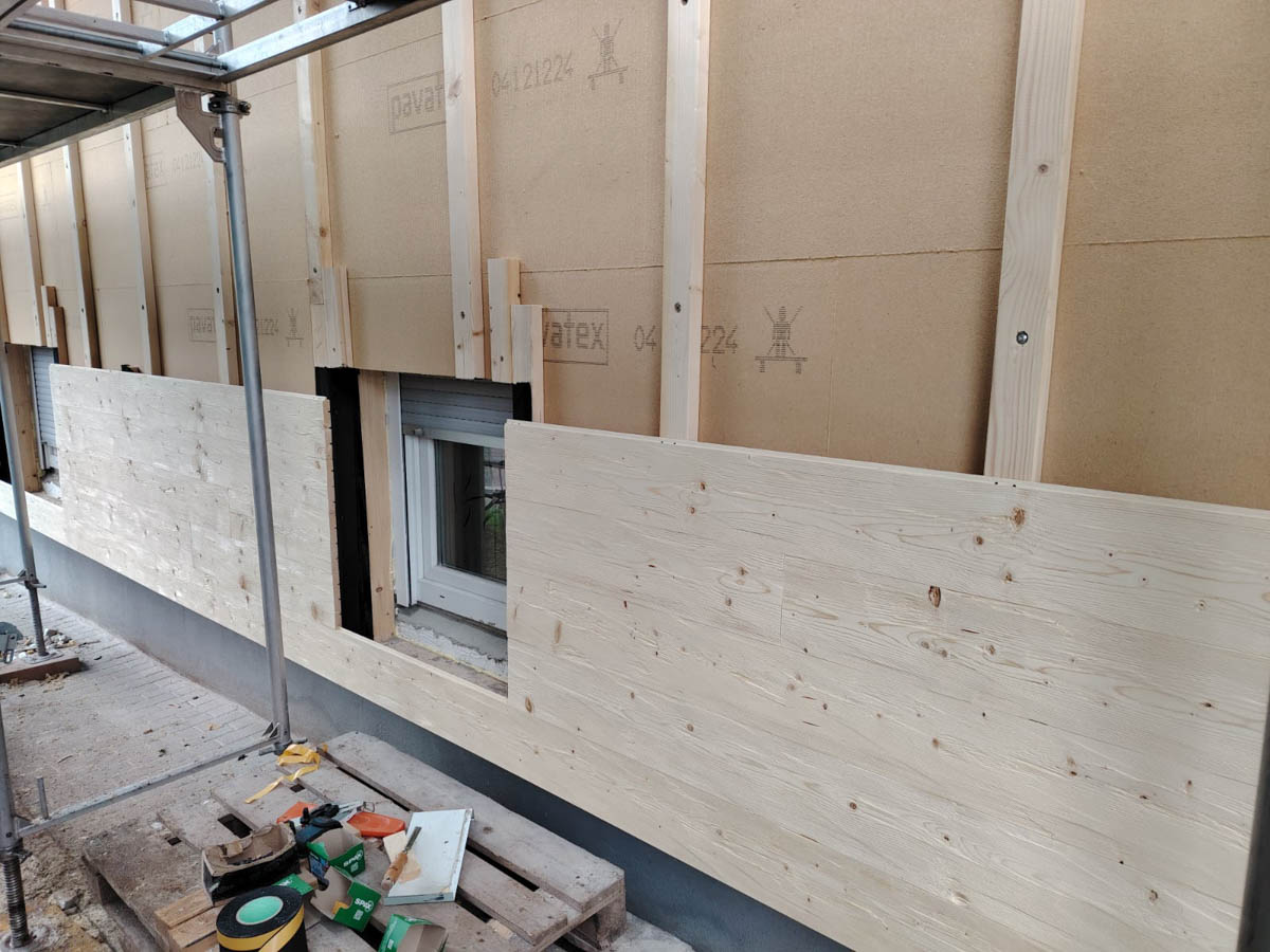 Das Projekt in Hammelbach umfasste die fachgerechte energetische Sanierung einer Hausfassade. Neben dem Schutz der Bausubstanz stand besonders die optische Aufwertung im Mittelpunkt. Der obere Gebäudeteil wurde mit einem hochwertigen PREFA‑Fassadensystem verkleidet. Im unteren Bereich kamen Hölzer aus Fichte mit gehackter Oberfläche zum Einsatz. So entstand eine Fassade mit besonderem Charme und klarer Ästhetik – witterungsbeständig, langlebig und nachhaltig. Jedes Detail wurde mit handwerklicher Präzision ausgeführt, um eine dauerhaft hochwertige und stimmige Gesamtlösung zu schaffen.